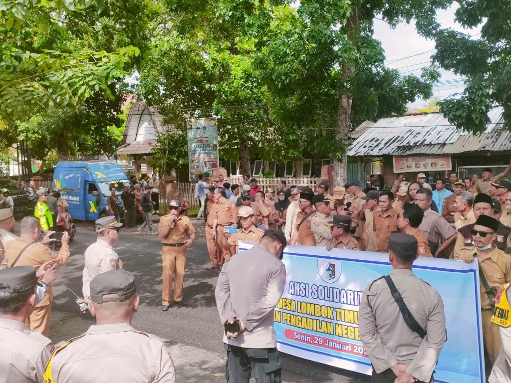 LOTIM LOMBOKita- Para kepala Desa di Lombok Timur menggelar aksi unjuk raaa ke kantor Bawaslu, sebagai bentuk solidaritas, terkait adanya salah seorang Kepala Desa yang di sidang Tindak pidana pemilu ( TiPiLu) di Pengadilan Negeri Selong Senin (29/1)