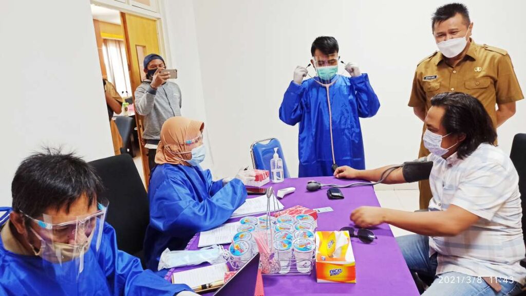 LOMBOKita – Anggota DPRD Kabupaten Lombok Tengah menerima suntukan vaksin Covid-19 untuk tahap pertama, Senin (8/3/2021). Vaksinasi tahap pertama ini akan berlangsung selama 3 hari.
