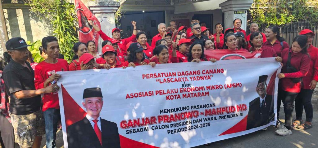 Saat rombongan Hasto Kristianto yang didampingi Ketua DPD PDIP NTB, Rachmat Hidayat maupun sejumlah pengurus DPD dan DPC PDIP NTB, secara spontan para pedagang canang dan Asosiasi Pedagang Mikro mencegat dan membentangkan spanduk Aksi Happening Art dukungan kepada Ganjar-Mahfud MD.