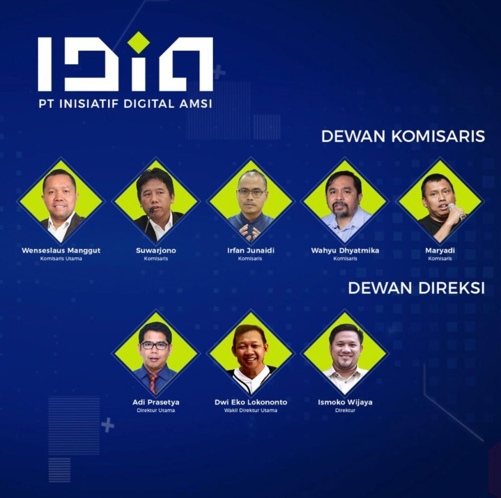 Adapun susunan Komisaris PT Inisiatif Digital AMSI yakni, Komisaris Utama Wenseslaus Manggut, Komisaris Suwarjono, Irfan Junaidi, Wahyu Dhyatmika dan Maryadi. Untuk Direksi yakni Direktur Utama Adi Prasetya, wakil Direktur Utama Dwi Eko Lokononto dan Direktur Ismoko Wijaya.