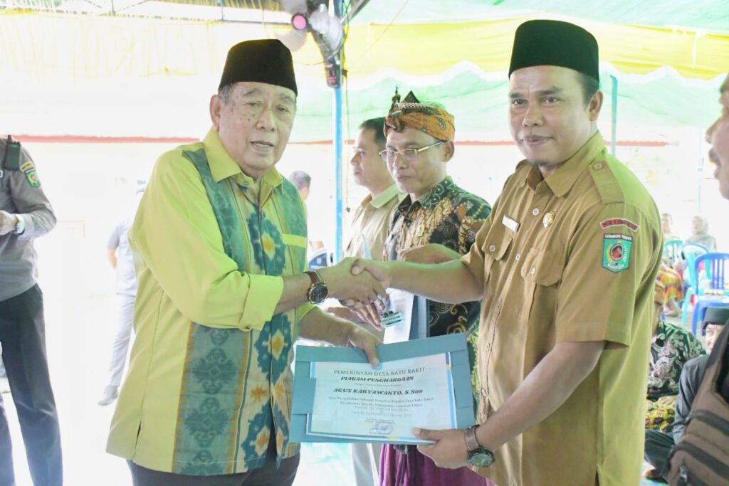 Pada perayaan HUT, Pemdes Batu Rakit juga menyerahkan Plakat dan piagam kepada para penjabat desa dan para tokoh pemekaran desa.