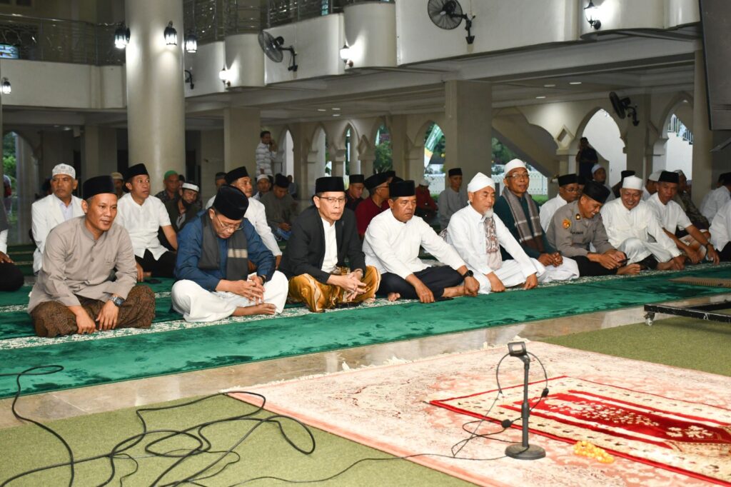 LOTIM LOMBOKita- Menandai pergantian tahun Hijriah, Bupati Lombok Timur H Haerul Warisin dan Wakil Bupati HM Edwin Hadiwijaya bersama Forkopimda, Kepala OPD beserta ribuan masyarakat melakukan doa akhir dan awal Tahun Baru Islam 1 Muharram, yang berlangsung di Masjid Agung Almujahidin Selong. Kamis (26/6). Dan doa akhir tahun dipimpin TGH. Hudatullah Muhibuddin Abdul Aziz.
