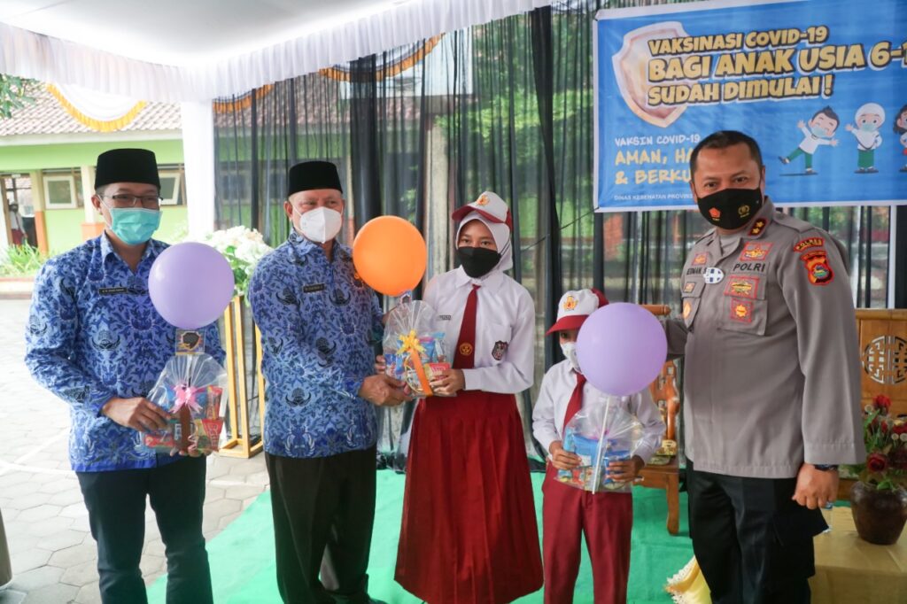 LOTIM LOMBOKita – Vaksinasi covid-19 untuk anak usia 6-11 tahun di Lombok Timur, Bupati Lotim HM Sukiman Azmy, bersama Kapolres Lotim AKBP Herman Suriyono, mulai mulai mencanangkan pelaksanaan vaksinasi, di SDN 3 Selong, Senin (17/1).