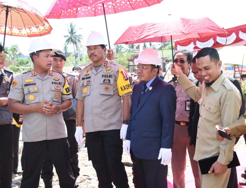 Bertempat di Markas Komando Kepolisian Resort (Polres) Lombok Utara Bupati Dr. H. Najmul Akhyar, SH. MH., bersama Kapolda NTB Irjen Nana Sudjana, MM., dan Kapolres Lombok Utara AKBP Herman Suriyono, S.IK, MH., secara simbolis melakukan peletakan batu pertama pembangunan kantor Makopolres Lotara itu (15/7/2019).