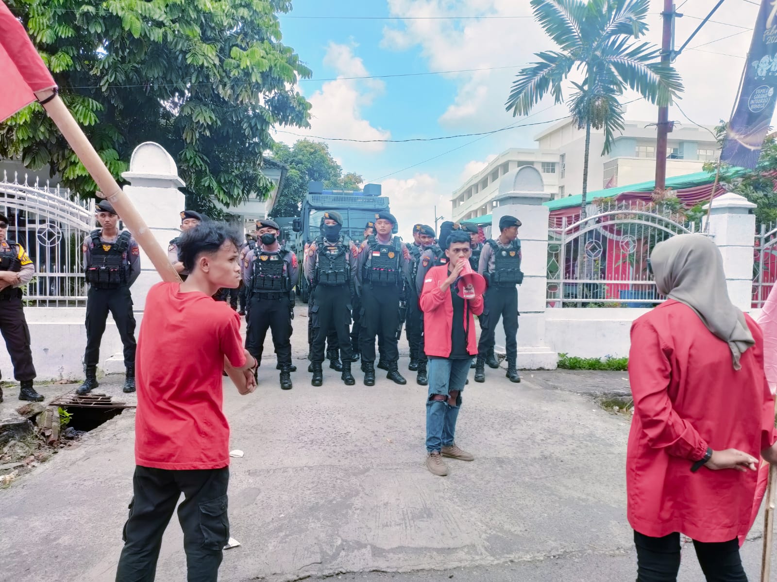 Pantauan media dilapangan massa aksi sempat bersitegang dengan aparat kepolisian di depan pintu gerbang kantor KPU Lotim.Selain itu menghadang mobil dinas Kadis dan Kepala Bidang di lingkup Pemkab Lotim,akan tapi berhasil dihalau aparat keamanan.