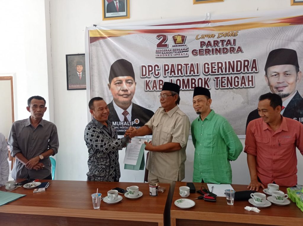Lalu Muhibban secara resmi keluar dari Partai Gerakan Indonesia Raya dan menyerahkan Kartu Tanda Anggota (KTA) kepada Ketua DPC Lombok Tengah, Muhallip di Sekretariat DPC Partai Gerindra, Senin (19/6/2023).