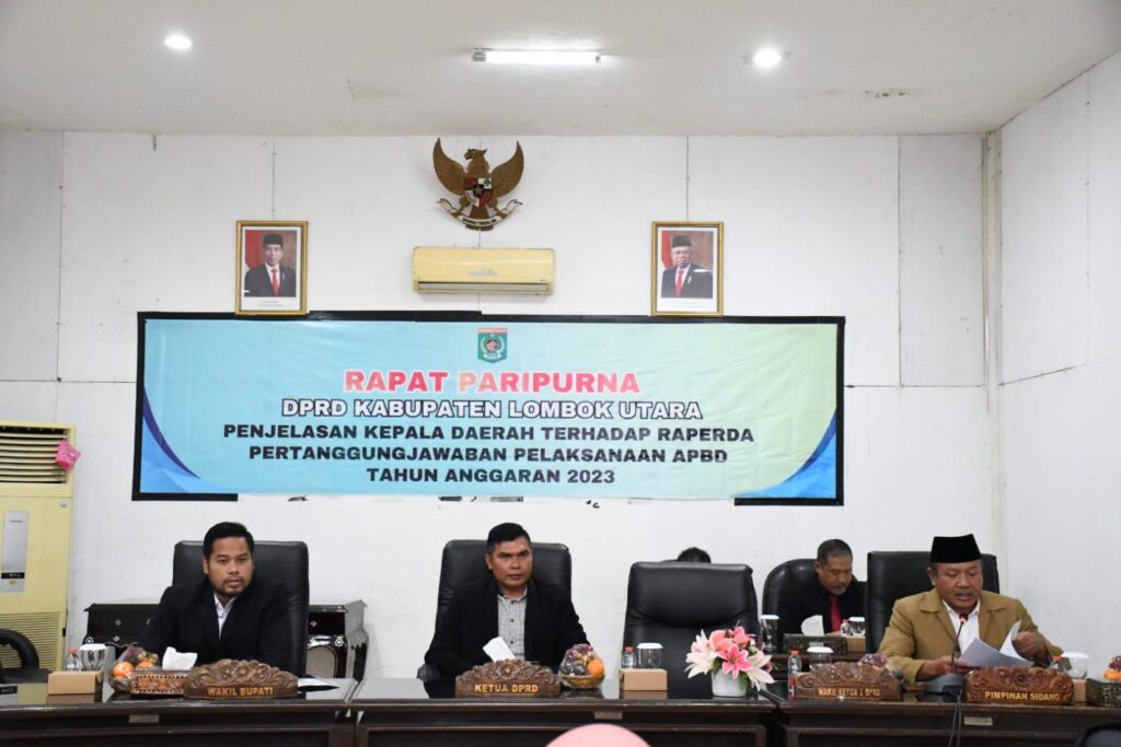 Dalam sidang Paripurna yang diawali dengan laporan komisi DPRD KLU disampaikan oleh I Made Kariyase dan dilanjutkan dengan gabungan pendapat akhir fraksi-fraksi dewan yang semuanya setuju terhadap Raperda Pertanggungjawaban Pelakasanaan APBD Tahun Anggaran 2023.
