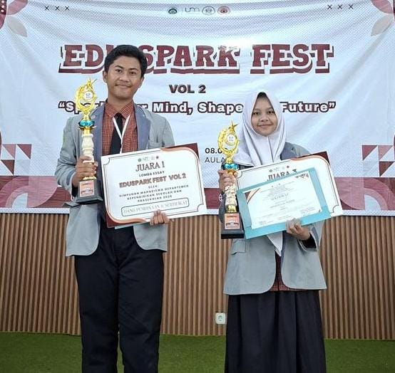 LOTIM LOMBOKita – Dua siswa MAN 1 Lombok Timur berhasil meraih Juara 1 dan Juara 3 dalam Lomba Karya Ilmiah Nasional Edu Spark Vol. II yang digelar Universitas Negeri Malang (UNM) Jawa Timur, Sabtu (25/4/2026).