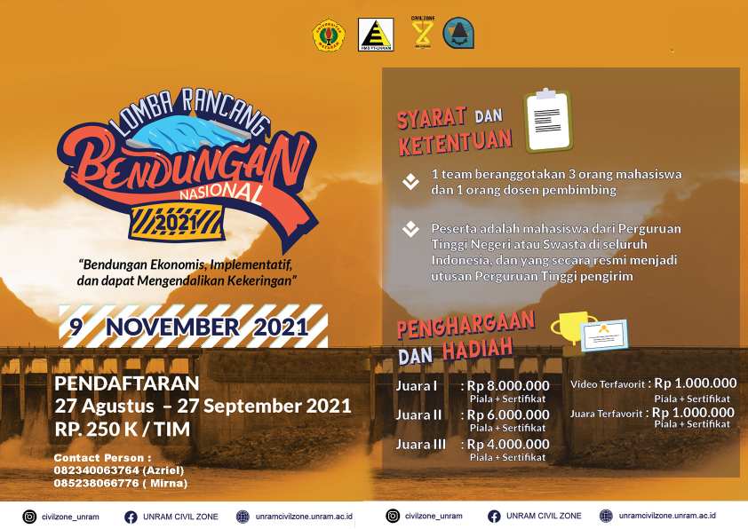 Ketua Panitia Civil Zone 2021, Mohamad Arvy Ananta Q mengungkapkan, lomba rancangan bendungan digelar oleh Himpunan Mahasiswa Sipil Unram. Dan, tahun ini digelar untuk skala nasional.