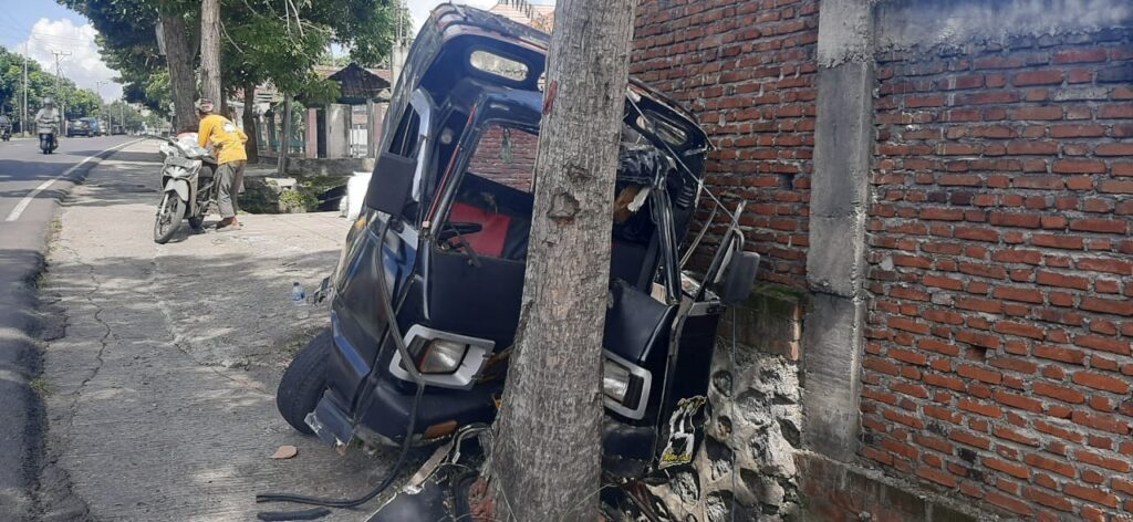 Sementara akibat menabrak pohon, sopir dan penumpang mobil carry mengalami luka-luka akibat benturan, warga yang melihat kejadian memberikan pertolongan membawa korban ke Puskesmas untuk mendapat perawatan.