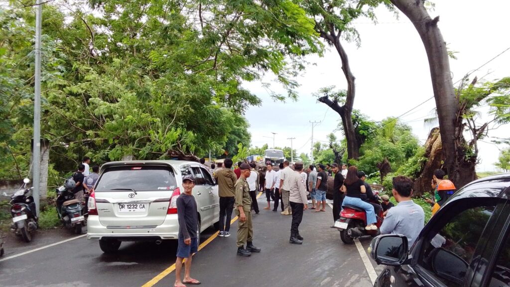 ” Kalau untuk sepeda motor bisa tapi untuk mobil belum bisa karena pohonnya masih ditengah jalan,” ujarnya seraya meminta kepada BPBD maupun Dinas LHK untuk segera menerjunkan pasukannya guna mengatasi masalah pohon tumbang.