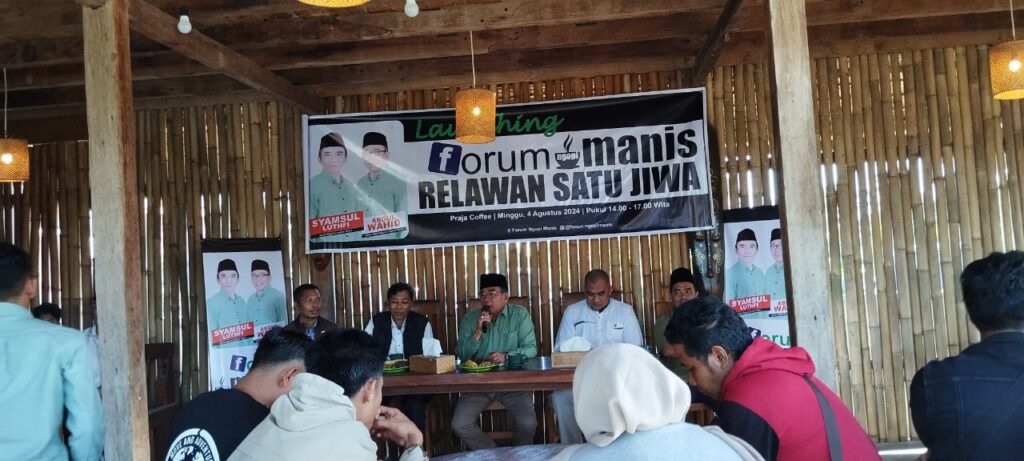 Hari ini, Relawan Satu Jiwa meluncurkan program “Forum Ngopi Manis” menuju Lombok Timur Maju dan Harmonis. Relawan Satu Jiwa adalah elemen gerakan berbasis millenial yang digagas oleh simpatisan pasangan bakal calon Bupati Lombok Timur, Luthfi-Wahid.