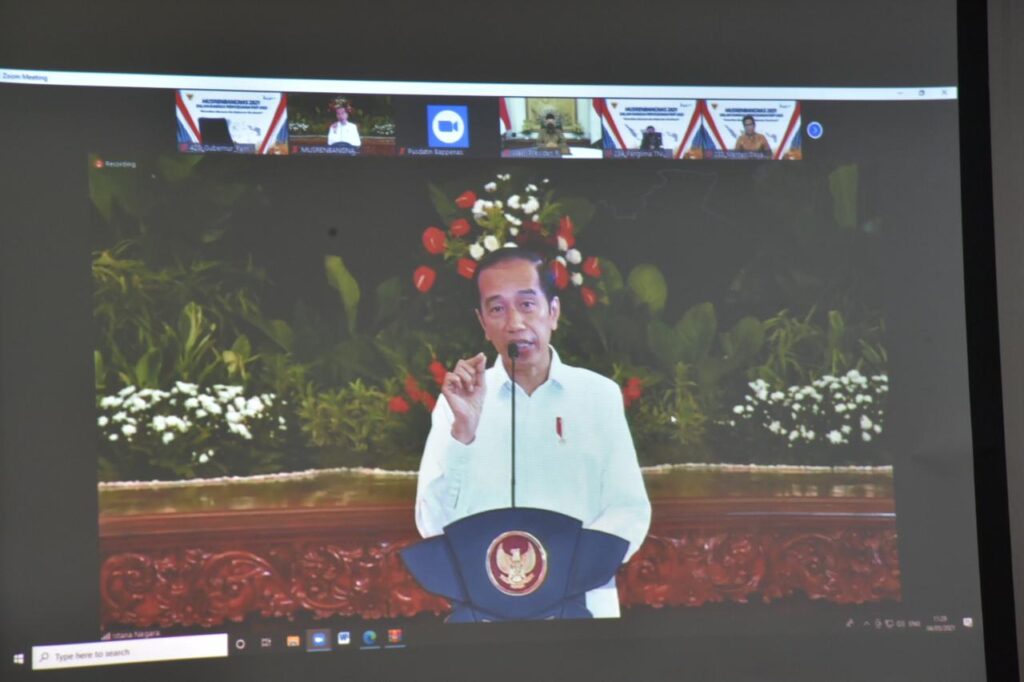 “Pandemi memberikan pelajaran yang luar biasa dalam perencanaan pembangunan kita. Sebaik apapun perencanaan kita juga harus siap denhan perubahan secara cepat untuk diselesaikan dengan tantangan dan peluang. Namun, tujuannya tidak boleh berubah yakni untuk masyarakat dan bangsa,” pesannya yang juga disaksikan oleh gubernur, bupati, dan wali kota beserta para pemangku kepentingan lainnya se Indonesia.