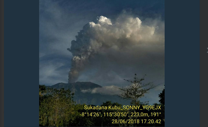 LOMBOKita – Hasil analisis BMKG menyebutkan Gunung Agung yang erupsi Kamis pada pukul 15.00 WIB menghasilkan sebaran abu vulkanik yang mengarah ke barat daya, barat dan barat laut Pulau Bali dengan ketinggian hingga 23.000 kaki.