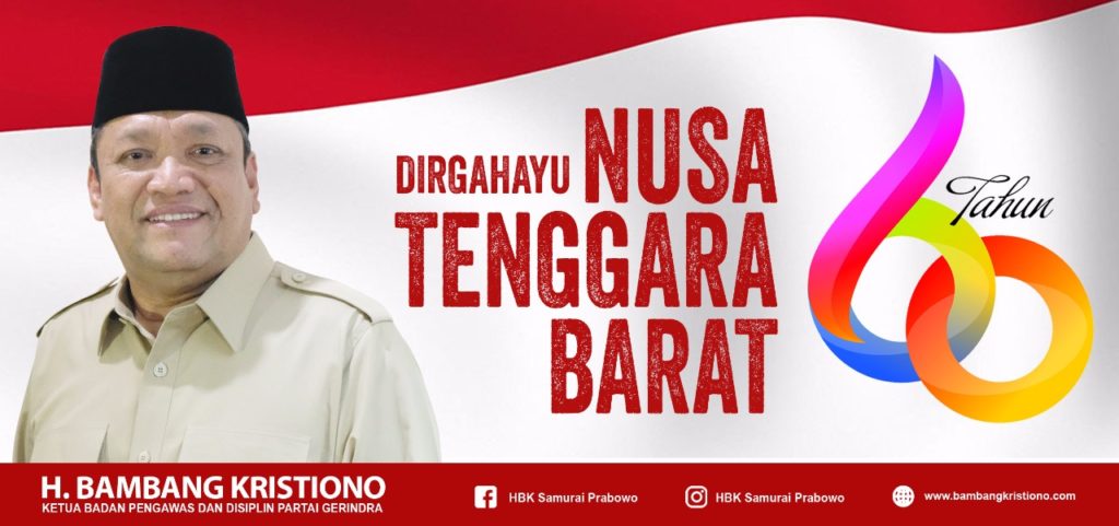 Ketua Badan Pengawas dan Disiplin (BPD) Partai Gerindra, H. Bambang Kristiono (HBK) mengatakan, HUT Provinsi NTB ke 60 tahun ini harus dijadikan moment untuk menggali kembali potensi unggulan wilayah dengan mengembalikan posisi pertanian NTB yang pernah berjaya beberapa dekade silam.