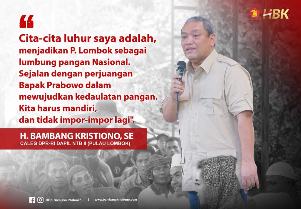 LOMBOKita – Anggota DPR RI dari Dapil NTB 2/Pulau Lombok, H Bambang Kristiono, SE (HBK) bakal mengawal penuh pembangunan DAM Mujur di Kab. Lombok Tengah yang sudah sangat didambakan warga setempat. HBK bakal menggunakan seluruh jejaringnya di pemerintah pusat untuk mewujudkan hal tersebut.