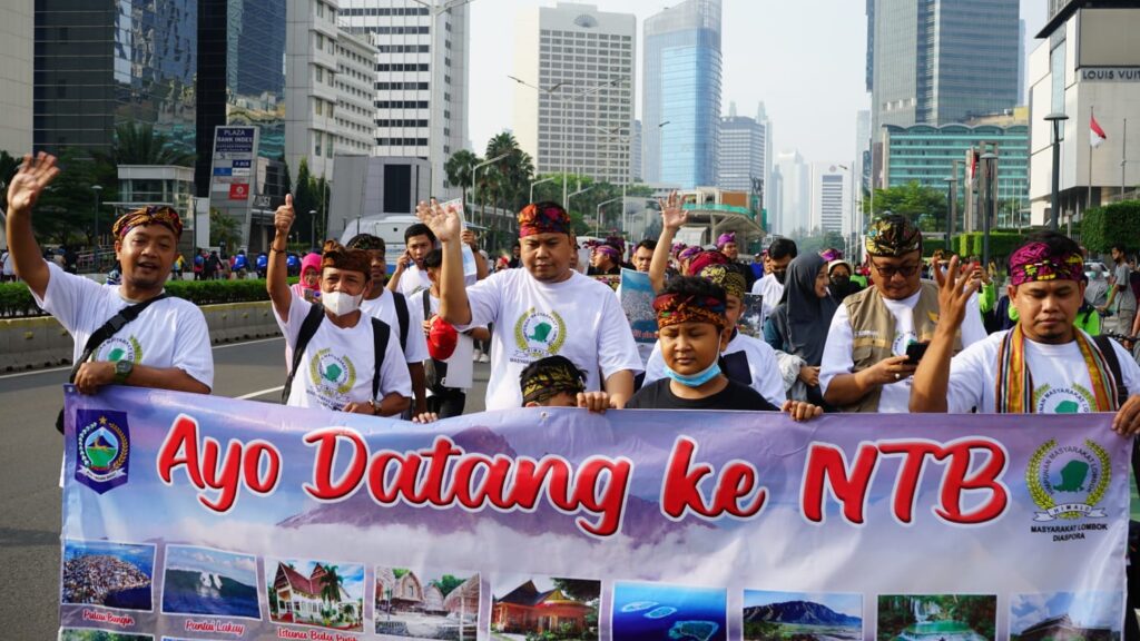 LOMBOKita – Puluhan warga Lombok diaspora sejabodetabek ikuti kampanye wisata di bundaran hotel Indonesia Jakarta pusat, 25 September 2022.