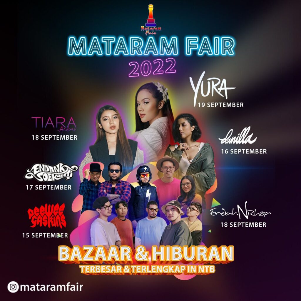 “Mataram Fair 2022 Bazar dan Hiburan Terbesar dan Terlengkap di NTB akan dilaksanakan di Lombok Epicentrum Mall pada tanggal 15-19 September 2022,” tulis akun Instagram @mataramfair.