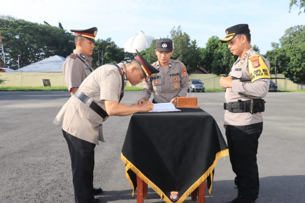 LOTENG LOMBOKoya – Polres Lombok Tengah menggelar upacara serah terima jabatan Kasat Intelkam, Kapolsek Janapria, Kapolsek Jonggat dan Kapolsek Praya Tengah di Lapang Apel Mapolres.