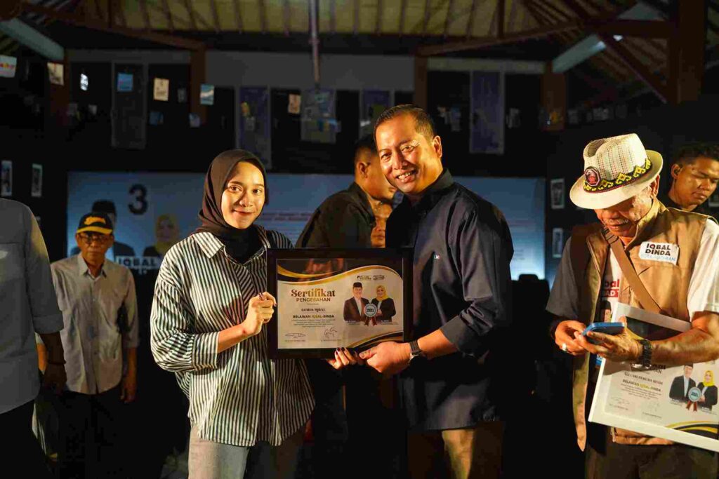 Sertifikat ini diberikan sebagai bentuk apresiasi atas keterlibatan aktif para relawan dalam mendukung pasangan Iqbal-Dinda, sekaligus menjadi simbol persiapan menuju sinergi yang berkelanjutan selama lima tahun ke depan.
