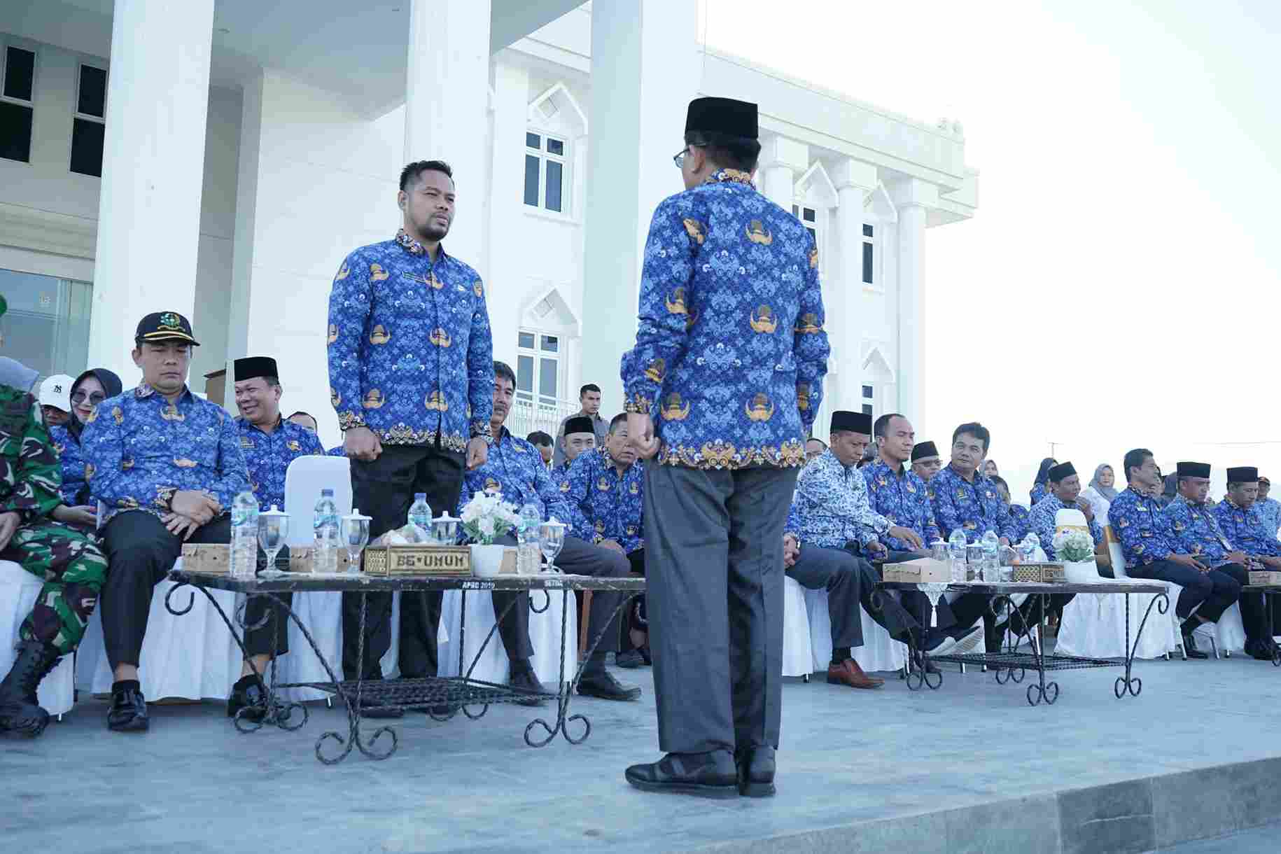 Bertindak sebagai Inspektur Upacara (Irup) Wakil Bupati Lombok Utara Danny Karter Febrianto R, ST., M.Eng, dan dihadiri juga oleh Sekretaris Daerah KLU Anding Duwi Cahyadi, S.STP.,MM, Anggota Forkopimda KLU, Staf Ahli Bupati dan Assisten Setda KLU, Para kepala OPD Lingkup Pemda KLU, serta tamu undangan lainnya.