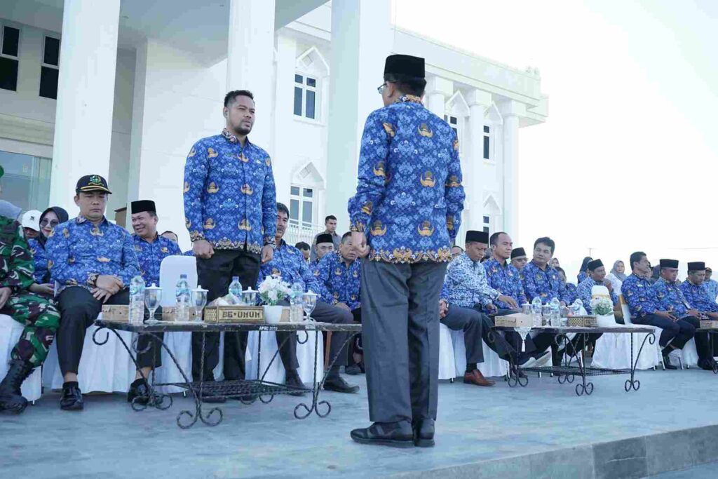 Bertindak sebagai Inspektur Upacara (Irup) Wakil Bupati Lombok Utara Danny Karter Febrianto R, ST., M.Eng, dan dihadiri juga oleh Sekretaris Daerah KLU Anding Duwi Cahyadi, S.STP.,MM, Anggota Forkopimda KLU, Staf Ahli Bupati dan Assisten Setda KLU, Para kepala OPD Lingkup Pemda KLU, serta tamu undangan lainnya.