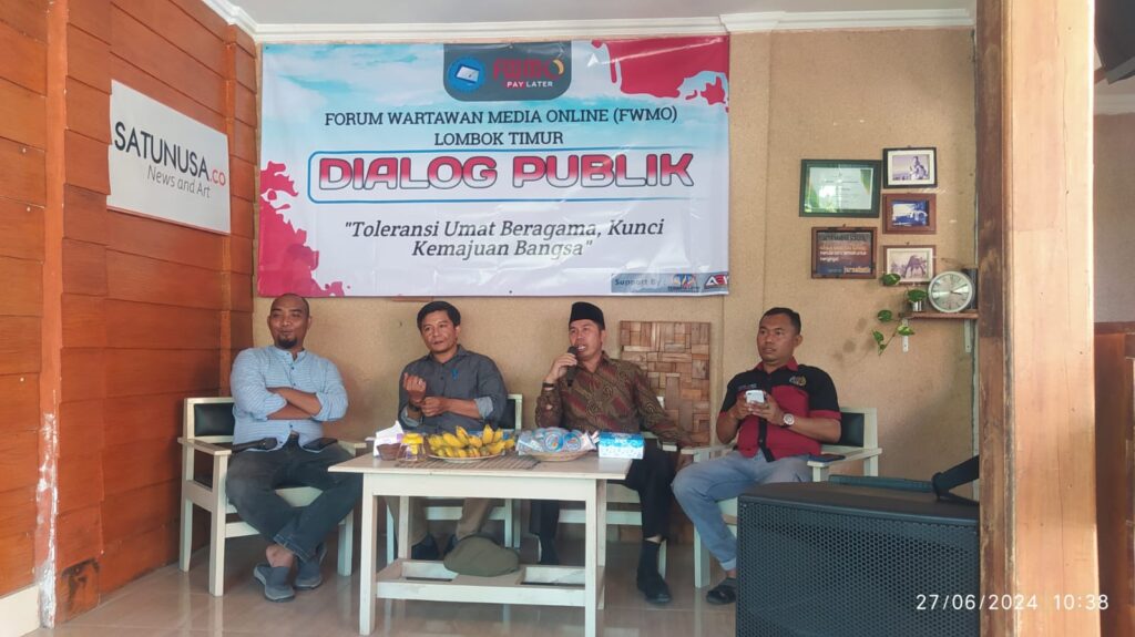 LOTIM LOMBOKita – Guna Jaga Toleransi antar Ummat beragama di Lombok Timur, Forum Wartawan Media Online (FWMO) Lombok Timur gelar dialog Publik dengan dengan Tema ” Toleransi Antar Ummat Beragama, Kunci Kemajuan Bangsa”, Kamis (27/06).
