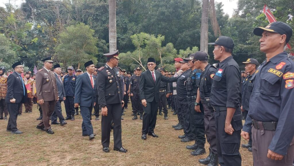 LOTIM LOMBOKita- Apel peringatan HUT Bhayangkara ke 78 di kabupaten Lombok Timur, digelar di halaman kantor Bupati, Senin (1/7), diikuti ribuan peserta dari TNI Polri, Scurity, pramuka, PolPP dan pertama kali melibatkan ratusan anggota Badan Keamanan Desa ( BKD) se Lombok Timur, sebagai peserta apel