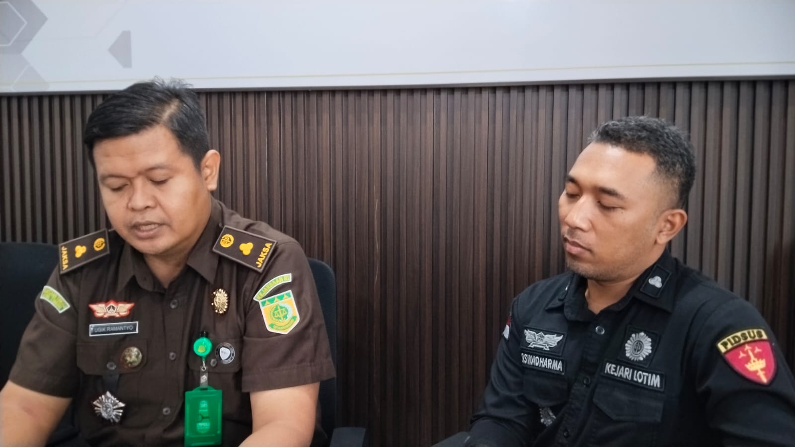 Keterangan FOTO: Kasi Intel Kejaksaan Negeri Lotim Ugy S (kiri) bersama Kasi Pidsus IB Darma