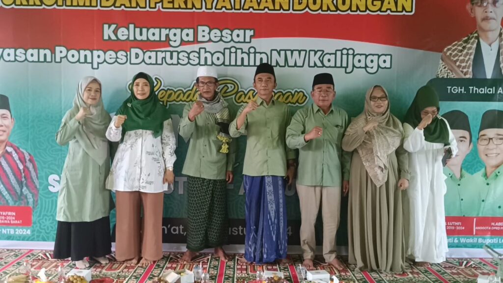 “Hj Sitti Rohmi Djalilah dan bapak H. Syamsul Luthfi adalah cucu Maulanasyeh. Masyarakat NW umumnya dan jamaah Darussholihin khususnya, mari kita sama dukung beliu, siap kita dukung gih”, ucap Pembina Yayasan Ponpes Darussholihin NW Kalijaga, TGH Thalal Ahmad disambut kompak para jamaah.