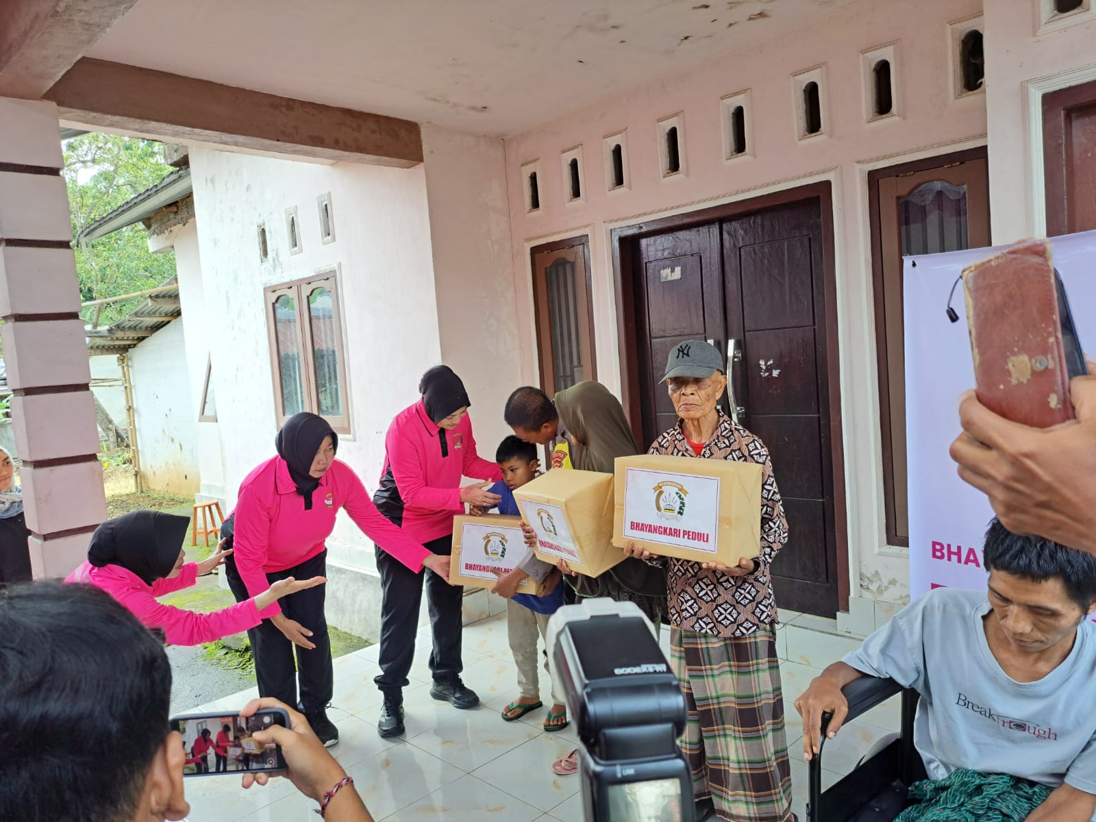 Puncak kegiatan ditandai penyerahan bantuan kursi roda kepada Sdr. Alfian, korban kecelakaan, serta bantuan sosial secara simbolis. Penyerahan dilakukan Ny. Uty didampingi Bripka Agus Salim.