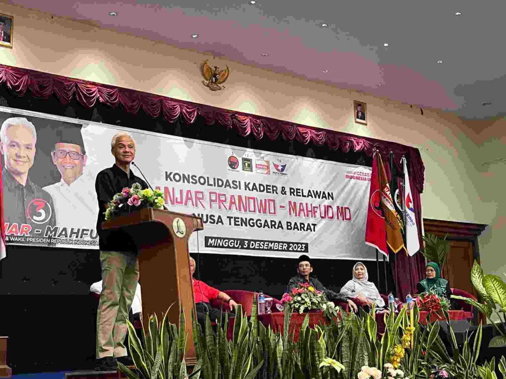 Hal itu dikemukakan Ganjar saat memberikan sambutan di hadapan para tokoh, alim ulama, dan para kader dan relawan Ganjar-Mahfud, saat menggelar konsolidasi di Mataram, Ahad (3/12/2023).