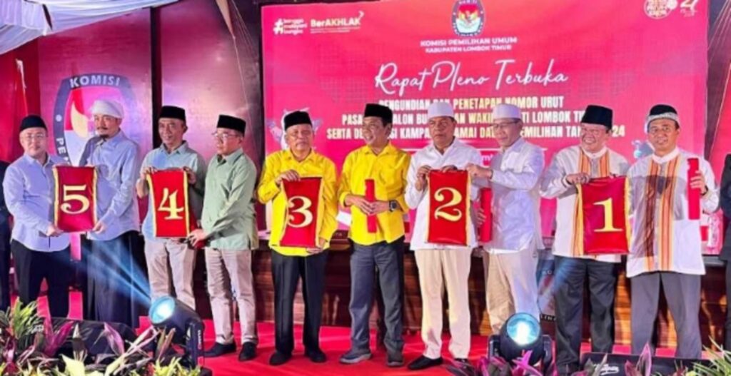 LOTIM LOMBOKita – Komisi Pemilihan Umum (KPU) Kabupaten Lombok Timur menggelar pengundian dan penetapan nomor urut Pasangan calon (Paslon) Bupati dan Wakil Bupati Lombok Timur (Lotim), pada Pilkada serentak tahun 2024. Berlangsung di halaman KPU,, Senin Malam (23|9).