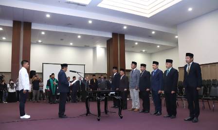 Acara pelantikan dan pengambilan sumpah jabatan tujuh jabatan strategis di daerah Tatas Tuhu Trasna itu dilakukan di Ballroom Lantai 5 Kantor Bupati Lombok Tengah.