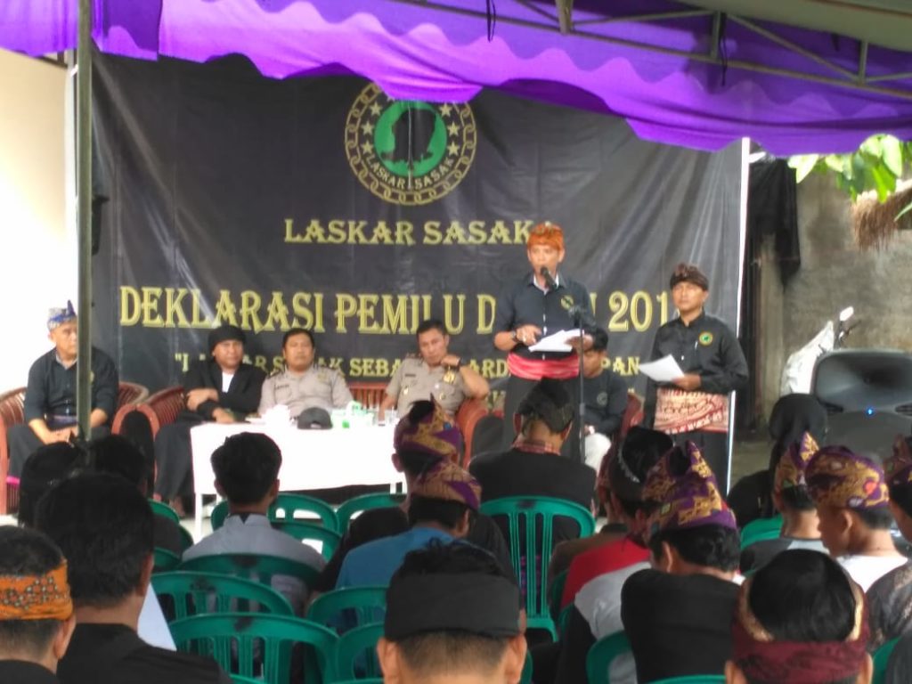 LOMBOKita – Laskar Sasak Provinsi Nusa Tenggara Barat (NTB), Sabtu (2/3) pukul 15.00 wita melaksanakan kegiatan Deklarasi Pemilihan Umum (Pemilu) Damai 2019, di Posko Korcam pengurus Laskar Sasak Desa Nyerot, Kecamatan Jonggat, Kabupaten Lombok Tengah.