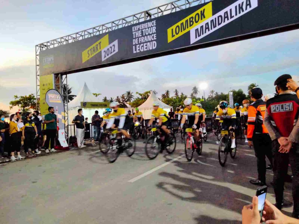 LOMBOKita – Sebanyak 1.308 Peserta L’Etape Indonesia by Tour de France di Mandalika memulai racenya. Pelepasan berlangsung di lapangan masjid Nurul Bilad Kuta Mandalika pada hari Minggu, 19/02.