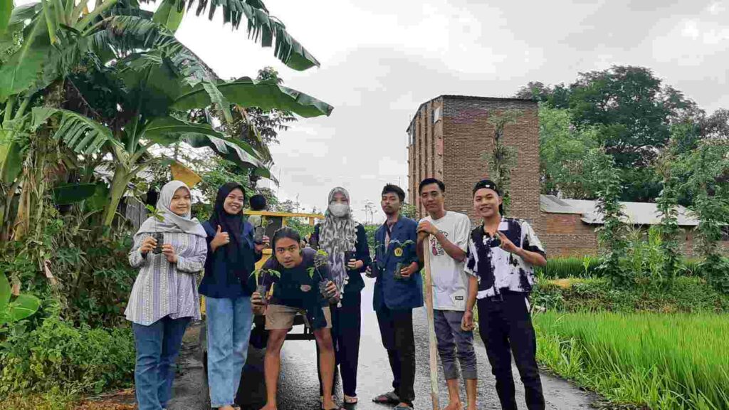 Para mahasiswa ini melakukan penanaman ratusan bibit pohon sebagai bentuk pengabdian untuk masyarakat setempat.