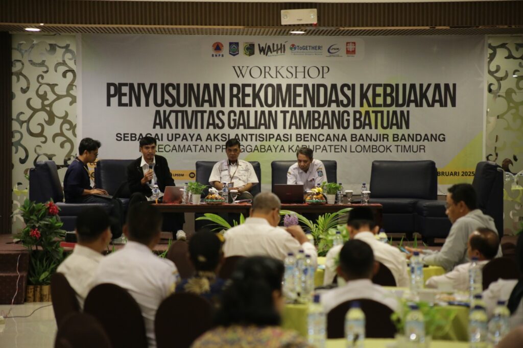 LOTIM LOMBOKita – Pengembangan Sumber Daya Mitra (LPSDM) bersama Dinas Lingkungan Hidup dan Kehutanan (DLHK) Provinsi NTB dan Wahana Lingkungan Hidup Indonesia (WALHI) NTB menggelar workshop penyusunan rekomendasi terhadap dampak galian C di Kecamatan Pringgabaya.