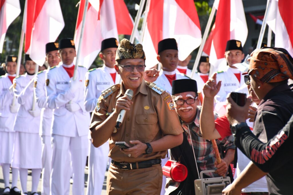 LOTIK LOMBOKita – Puncak kegiatan karnaval yang diikuti seluruh OPD se Lombol Timur, berlangsung meriah, bahkan Penjabat Bupati Lombok Timur, HM.Juaini Taofik turun berjoget dari panggung kehormatan serta bernyanyi bersama peserta karnavak, di Taman Rinjani Selong,Senin (2|9).