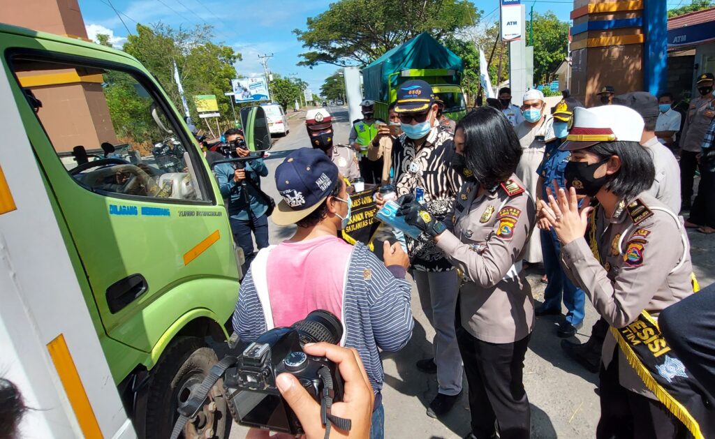 Ditambahkan, Kasat Lantas Polres Lotim, AKP. Rita Yuliana, kegiatan peninjauan pos check point, Satlantas Polres Lotim turut serta ambil bagian, memberikan imbauan pada masyarakat agar taat protokol kesehatan, termasuk mengingatkan supaya masyarakat menerapkan dobel masker sebagai langkah awal pencegahan penularan Covid-19 sebagaimana instruksi dari Kapolri dan presiden.