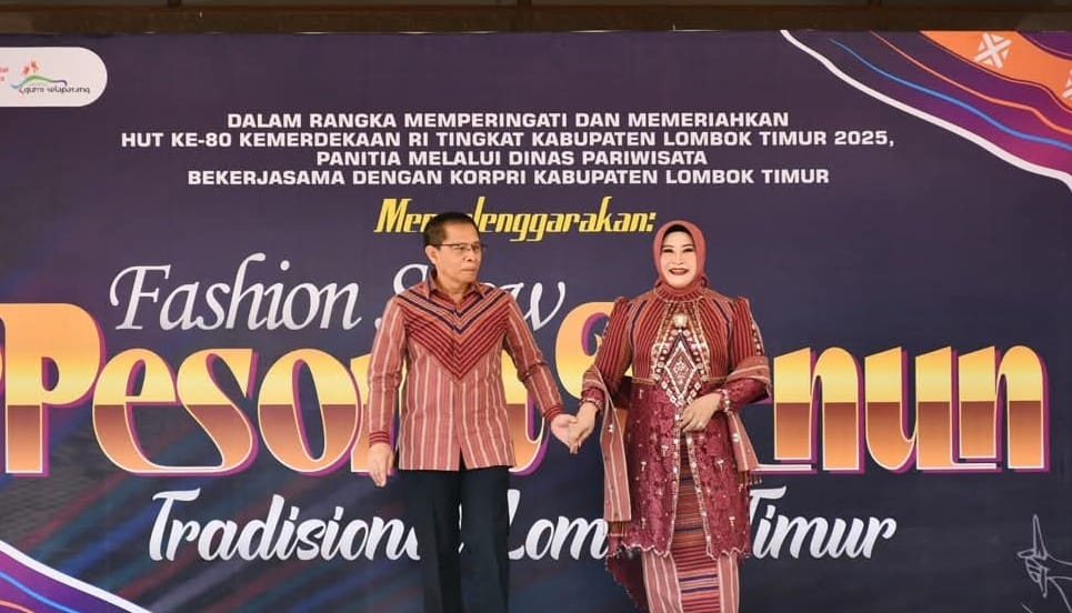 LOTIM LOMBOKita -Para pejabat di lingkup Pemerintah Kabupaten Lombok Timur tampil gaya dalam festival kain tenus Lotim tahun 2025 atau fashion show dalam rangka menyemarakkan HUT RI ke-80.