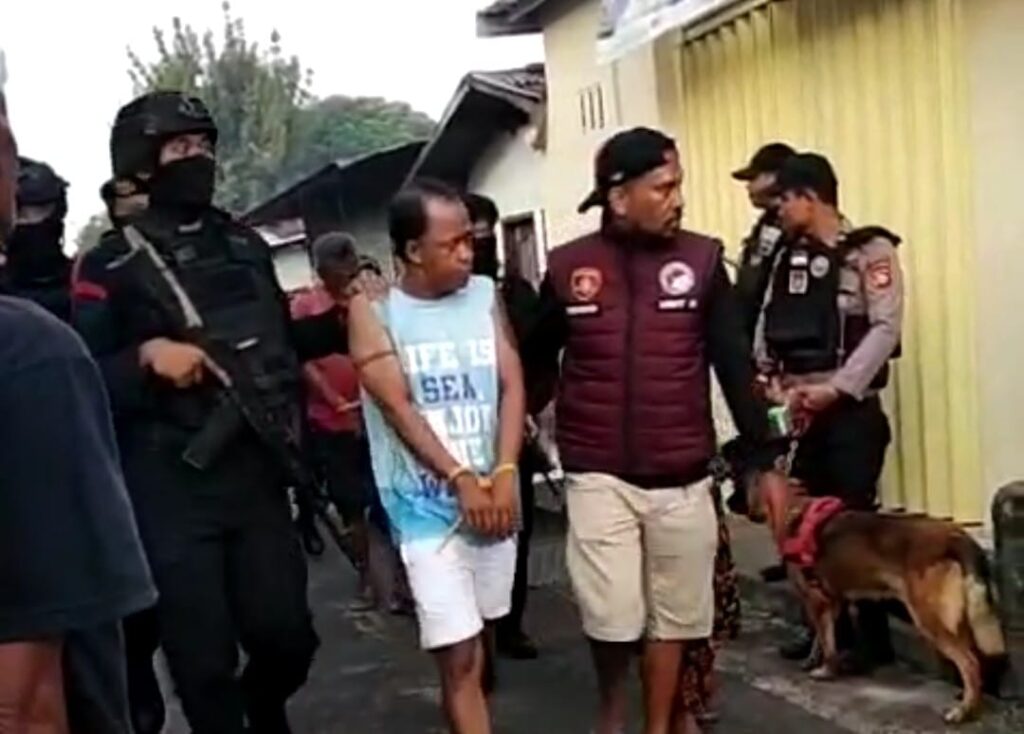 Dalam penangkapan itu Polisi menurunkan kekuatan penuh mulai dari pasukan brimob,dalmas bersenjata dan betameng sampai dengan anjing pelacak.
