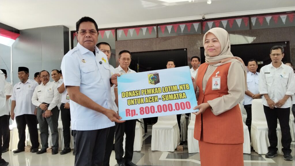 LOTIM LOMBOKita- Sebagai bentuk impati terhadap para korban bencana alam banjir yang menimpa tiga provinsi di Indonesia, yaitu yang Aceh dan Sumatra, Pemkab Lombok Timur menyalurkan donasi Rp 1,350 Miliar, donasi ini disalurkan melalui Bank Syariah.