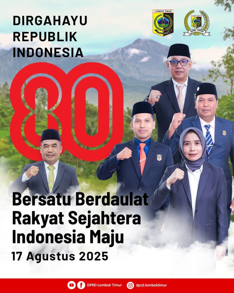 Pimpinan dan Anggota DPRD Lombok Timur Mengucapkan Dirgahayu Kemerdekaan RI ke 80 Dimyati 9 bulan ago Sekuruh Pimpinan dan Anggota DPRD Lombok Timur Mengucapkan Sirgahayu RI ke 80