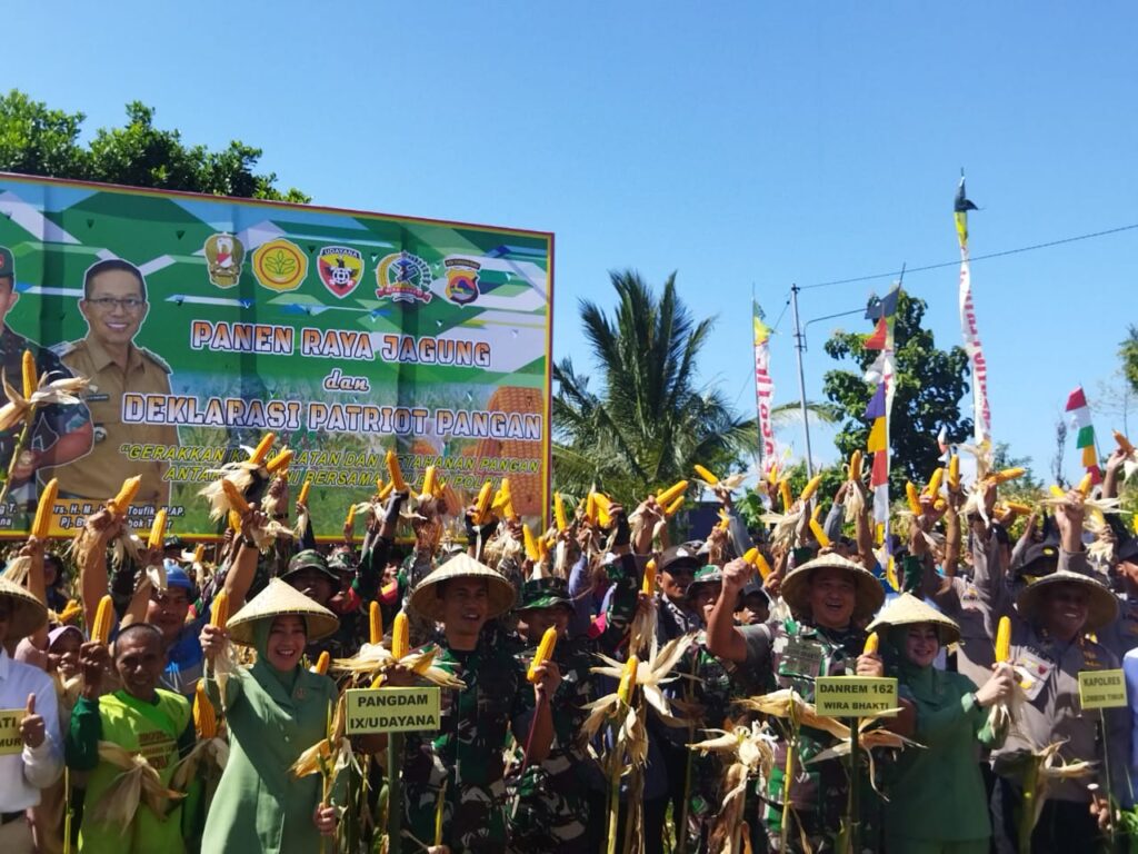 LOTIM LOMBOKita – Pangdam IX/Udayana, Mayor Jenderal TNI Bambang Trisnohadi melakukan panen raya jagung di Desa Gunung Malang,Kecamatan Pringgebaya Kabupaten Lombok Timur,Sabtu (4/5).Selain itu melakukan deklarasi patriot pangan.