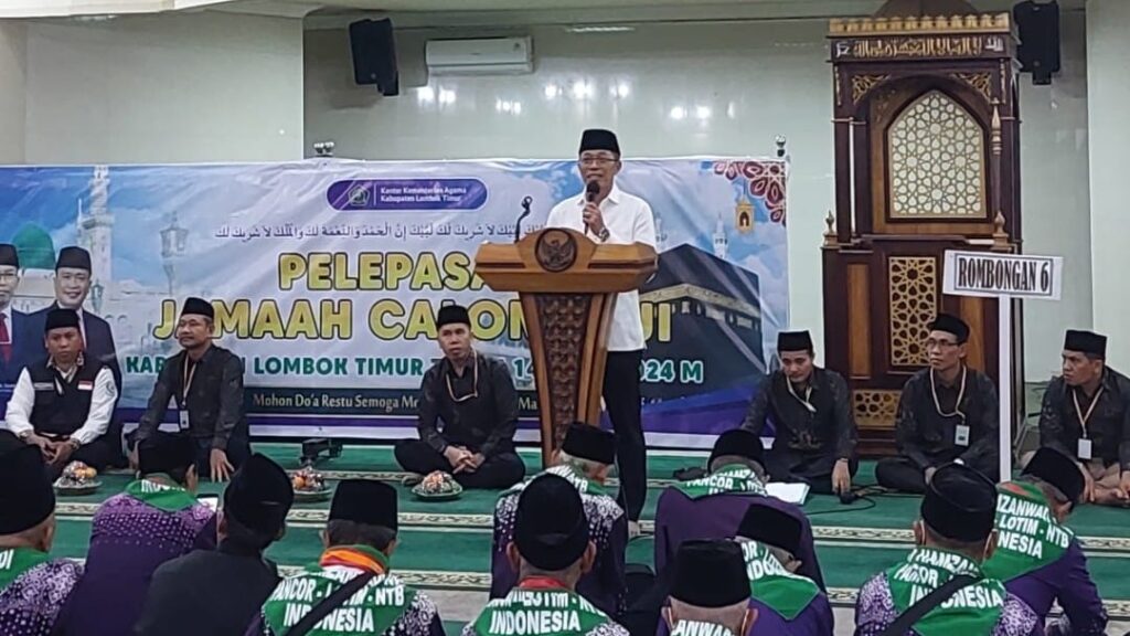 LOTIM LOMBOKita – Penjabat Bupati Lombok Timur,HM.Juaini Taofik melepas Kloter pertama Calon Jamaah Haji asal Lotim di Masjid Agung Al Mujahidin Selong,Rabu pagi (15|5).