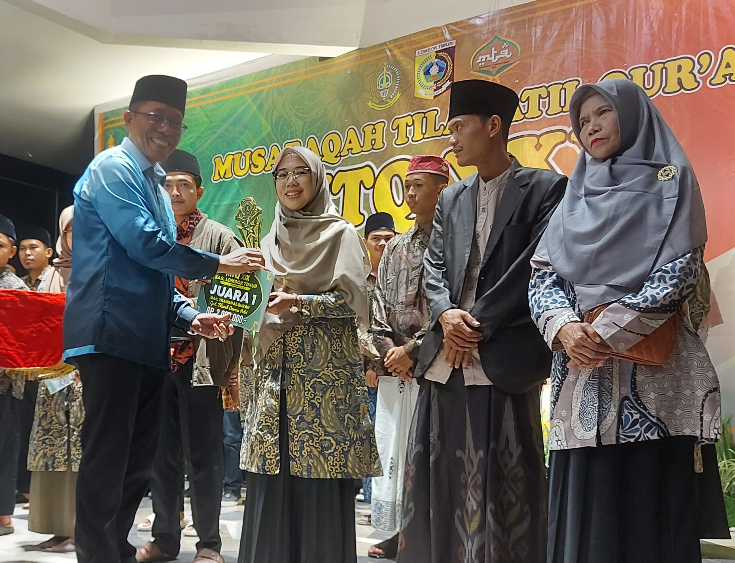 LOTIM LOMBOKita – Penjabat Bupati Lombok Timur HM Juaini Taofik menutup pelaksanaan Musabaqoh Tilawatil Qur’an (MTQ) ke XXX tingkat Kabupaten Lombok Timur, dan membagikan hadiah bagi para juara, dihalaman kantor Bupati, Senin (29/4).