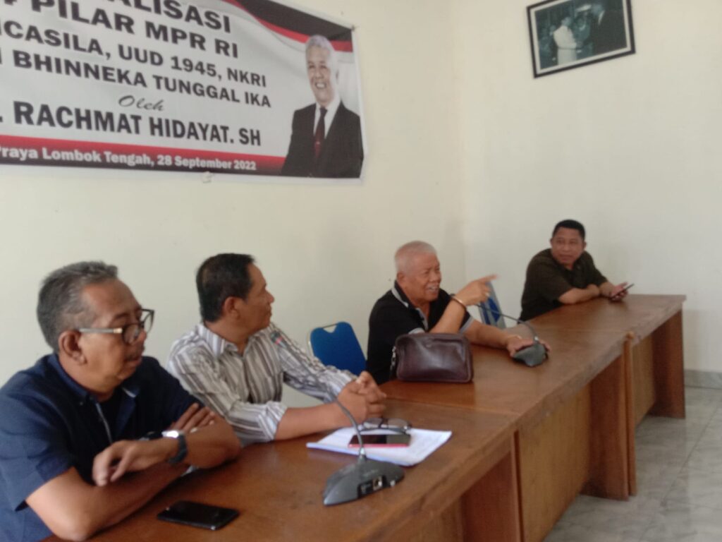 LOMBOKita – Angggota DPR RI dari Fraksi PDI Perjuangan H Rachmat Hidayat menyosialisasikan empat pilar kebangsaan di Lombok Tengah, Rabu (28/9/2022). Sosialiasi tersebut bagian dari upaya nyata untuk terus membumikan nilai-nilai kebangsaan di Pulau Seribu Masjid.