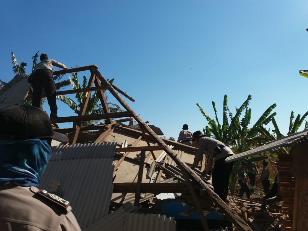 LOMBOKita – Ratusan anggota Polres Lombok Timur bersama anggota Polsek wilayah jajarannya melakukan kerja bakti gotong royong puing-puing rumah korban gempa bumi di Kecamatan Sambelia dan Sembalun.