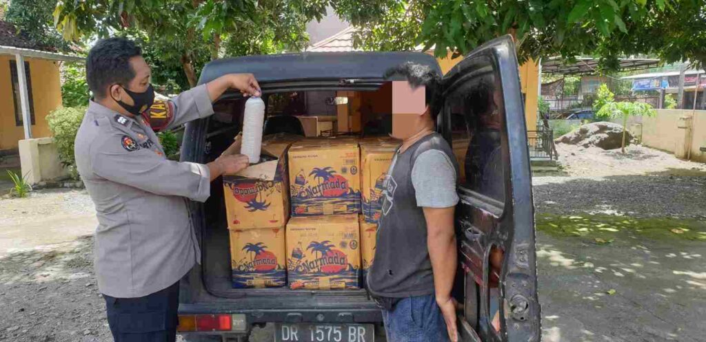 Saat diberhentikan dan dilakukan pemeriksaan, kata Sayum, kendaraan tersebut bermuatan Miras jenis tuak yang sudah dikemas ke dalam botol plastik air mineral dan dibungkus menggunakan kardus.